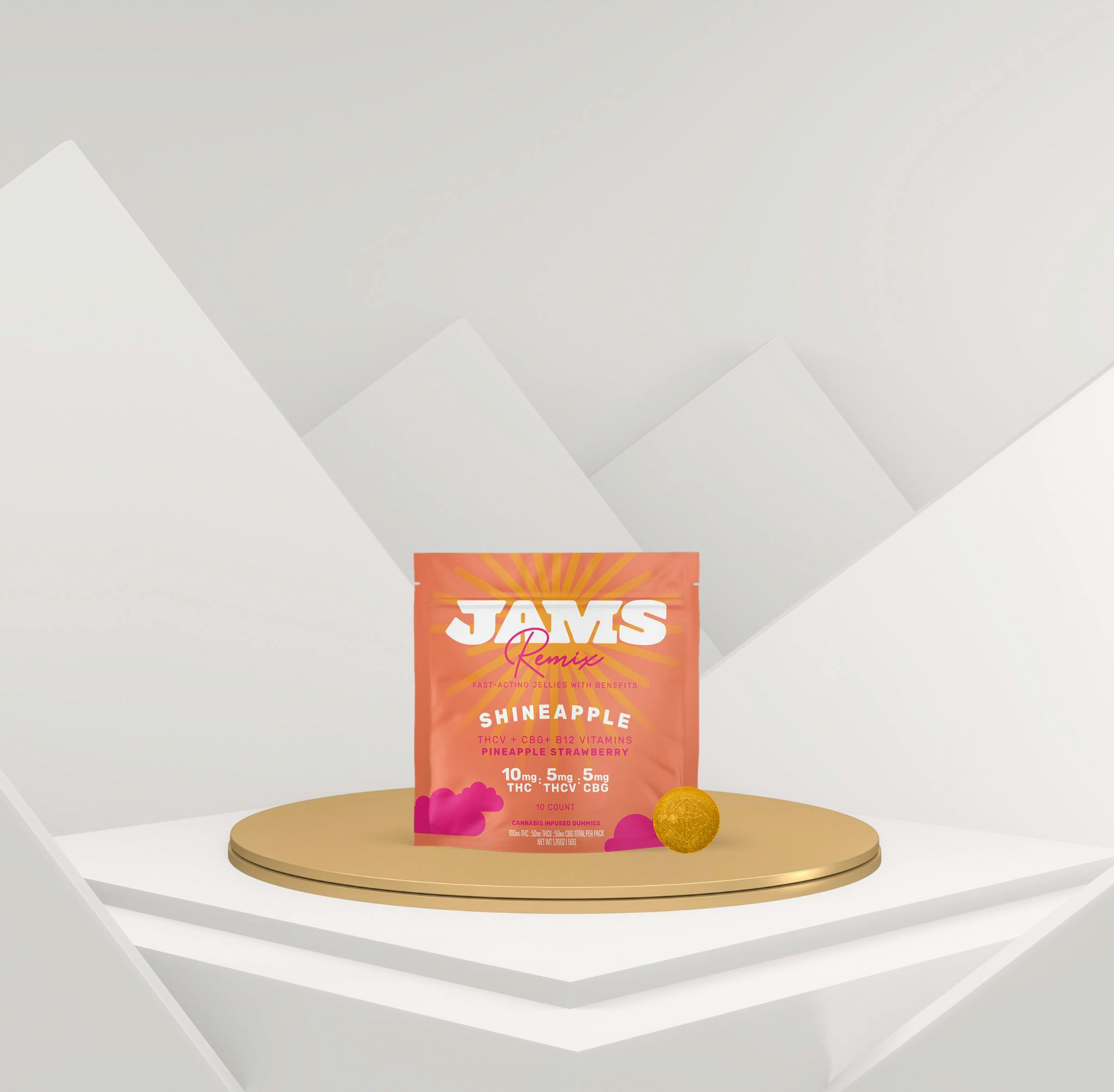 JAMS - Remix - Shineapple Pineapple Strawberry - 10 Pack - 10mg THC - 5mg THCV - 5mg CBG - Edibles